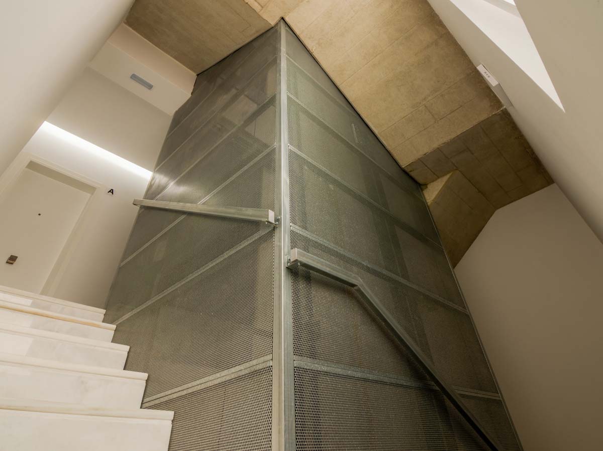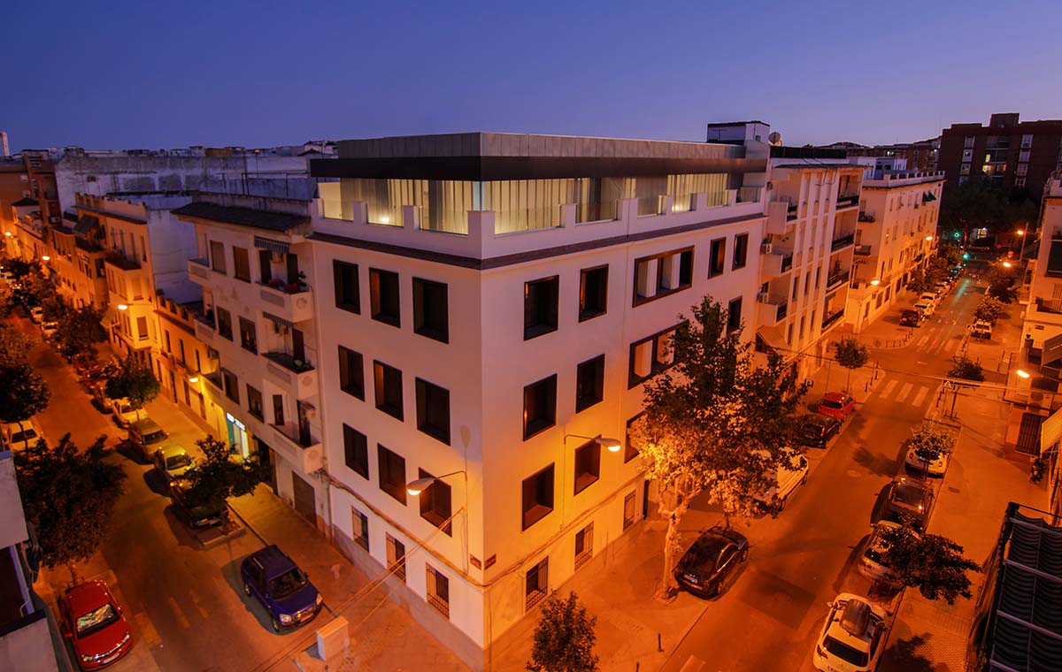 Original de forjados unidireccionales de viguetas de hormigón y bovedillas aligeradas cerámicas, pilastras de ladrillo y muros de carga. Para la planta ático, sistema estructural ligero, ejecutado con pilares metálicos y forjados de chapa colaborante.